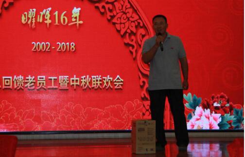 晚會現場陸續頒發公司為十年老員工準備的獎品,十六年員工代表、十年員工代表及新晉精英代表相繼發表獲獎感言。因為有您敬業愛崗,成就了品質曜暉;因為有您付出奉獻,發展壯大了曜暉;因為有您攜手同行,我們共筑百年曜暉。同仁同智共同心 豪情壯志共輝煌,感恩有您,感謝陪伴!